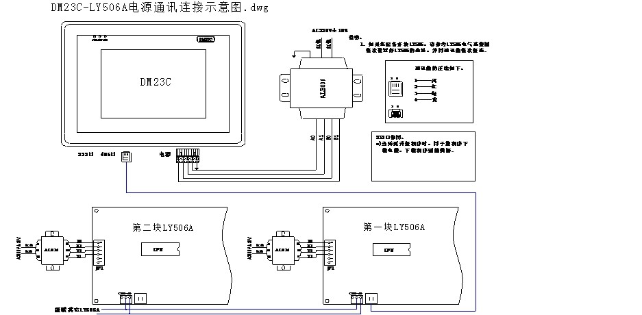 2.2、瀚信德品牌低溫冷水機DM23C電源、通訊連接示意圖:
